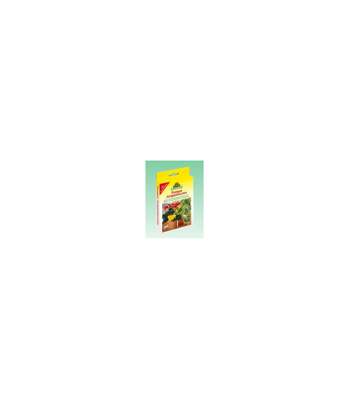 Trampa Atrapainsectos Trampa Atrapainsectos ES - Sin insecticidas Cebo cromático atrayente para insectos perjudiciales en macetas y balcones. Listo para el uso. Pegamento libre de insecticidas. La cola adhesiva aguanta perfectamente las altas temperaturas y la humedad. No contiene agentes activos. Atrae a las moscas blancas, minador de las hojas, pulgones, trips y otros insectos voladores.