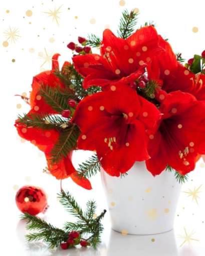 El Amaryllis es una de las flores más espectaculares del invierno y una de las más apreciadas plantas de Navidad. Sus grandes pétalos, disponibles en tonos rojos, rosados o blancos, llenan el ambiente de sofisticación. Su porte elegante y su floración majestuosa lo convierten en una opción perfecta para decorar mesas, recibidores o como regalo de impacto. Además, su desarrollo es fascinante: ver cómo su tallo se alarga y se abre paso hasta las flores es un pequeño milagro navideño.