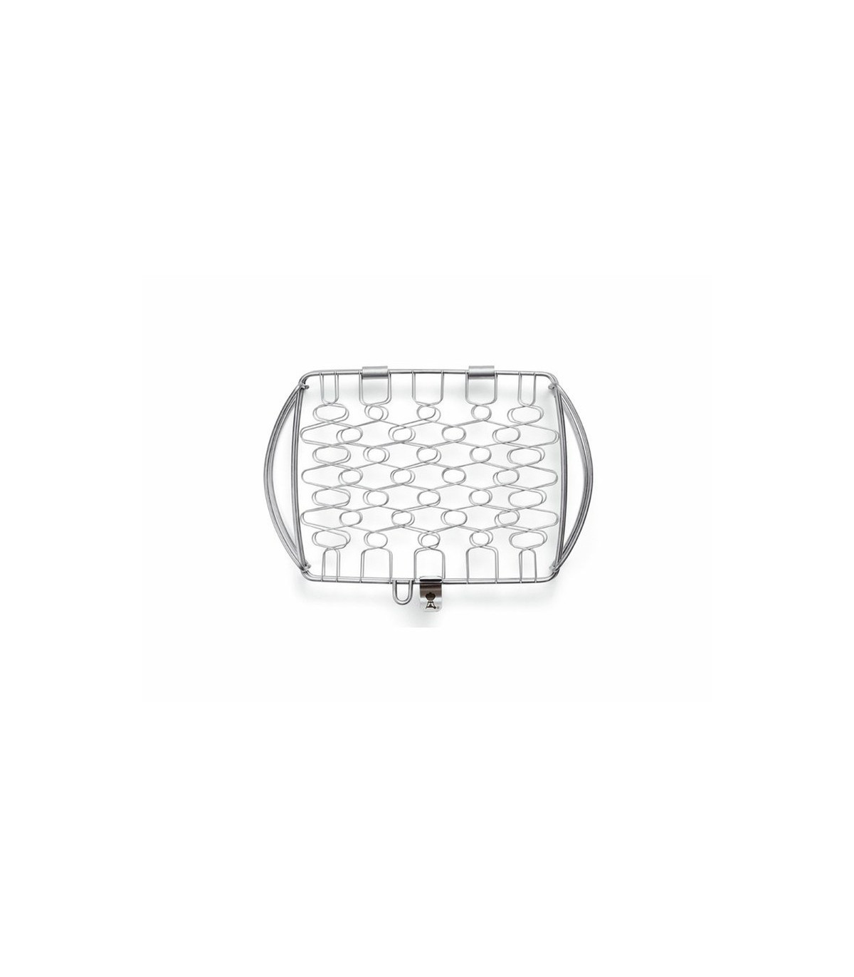 La cesta pequeña para asar pescado de Weber está hecho de acero inoxidable, este material es flexible para alojar alimentos con diferentes tamaños y formas. Este diseño nos permite cocinar pescados o filetes, y también darles la vuelta rápidamente sin estropear su frágil carne, de esta manera poder conseguir la cocción perfecta. Sus medidas son 5,59 cm de altura, 20,57 cm de anchura y 27,94 cm de profundidad. Es adecuada para cualquier barbacoa de gas Weber® Q 100/1000 y modelos de tamaño superior, barbacoas Smokey Joe y barbacoas de carbón de tamaño superior