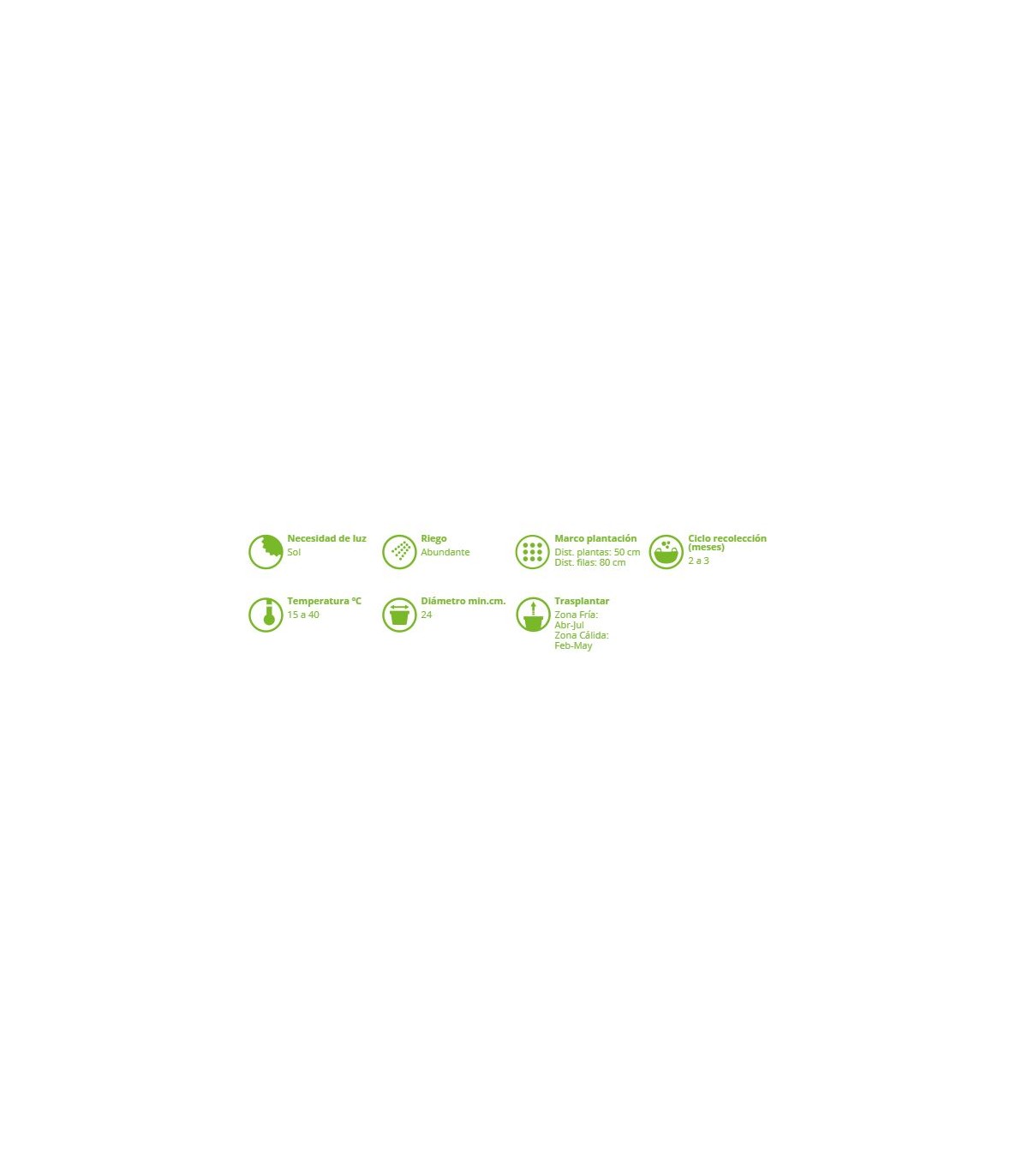Lycopersicon esculentum Mill. Variedad de tomate de ciclo medio-precoz y calibre medio. pack 1 Este formato permite adelantar la entrada en producción mediante una planta ya formada, suele presentarse entutorada si la altura lo precisa. Medidas: 9 cm * 9 cm * 8 cm Volumen aprox. : 440 cm3.