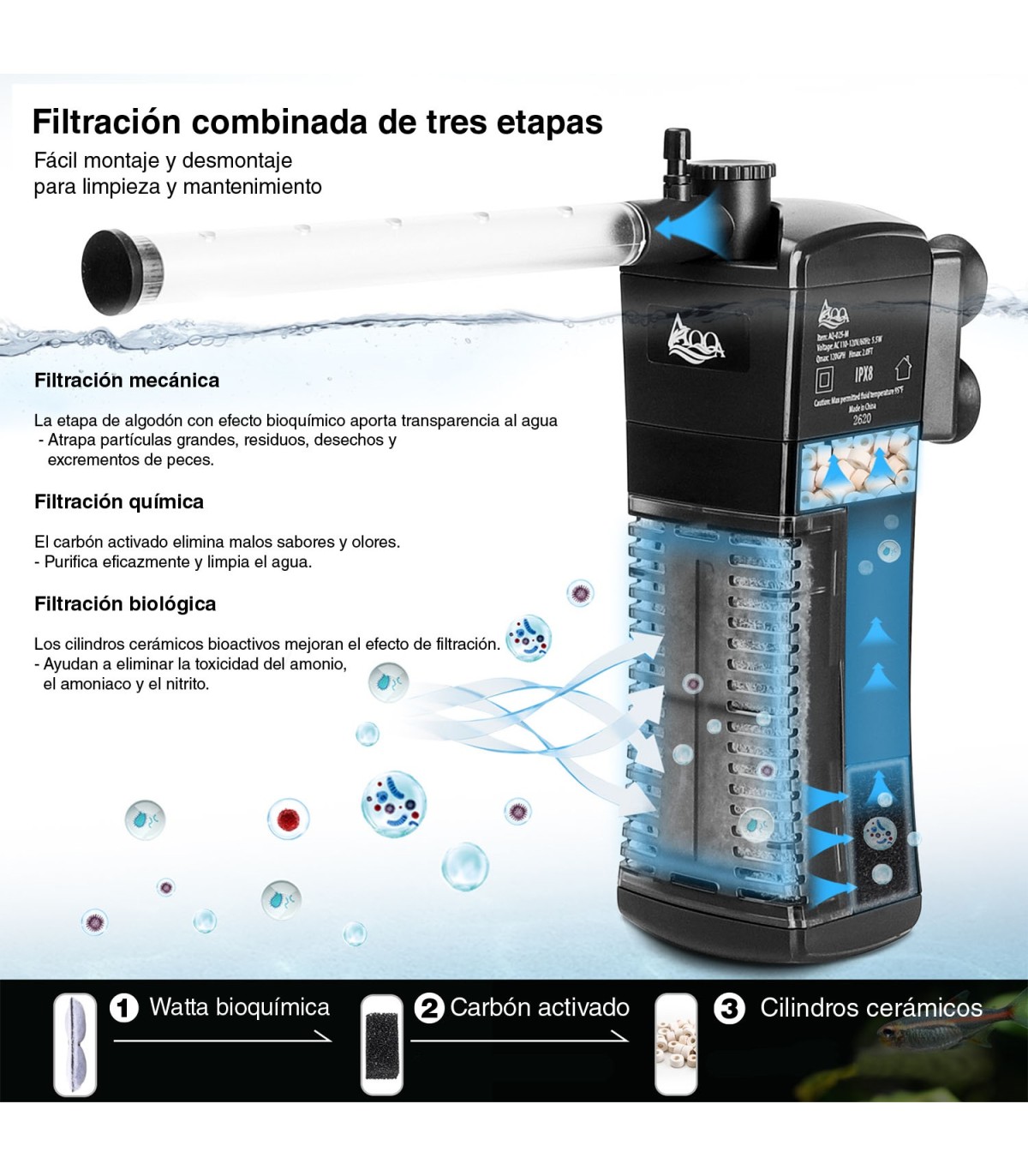 Las diferentes cargas de los Filtros interiores AQQA SuperClear por etapas obtienen una alta transparencia a la vez que una excelente calidad en el agua. Esto permite mantener unos valores saludables de amonio y nitrito.