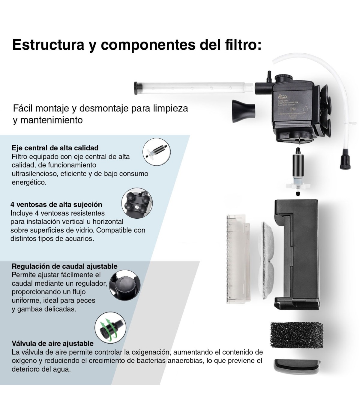 Los Filtros interiores AQQA SuperClear AQ025 ofrecen una combinación sinérgica entre filtración eficiente, circulación homogénea y una excelente oxigenación.