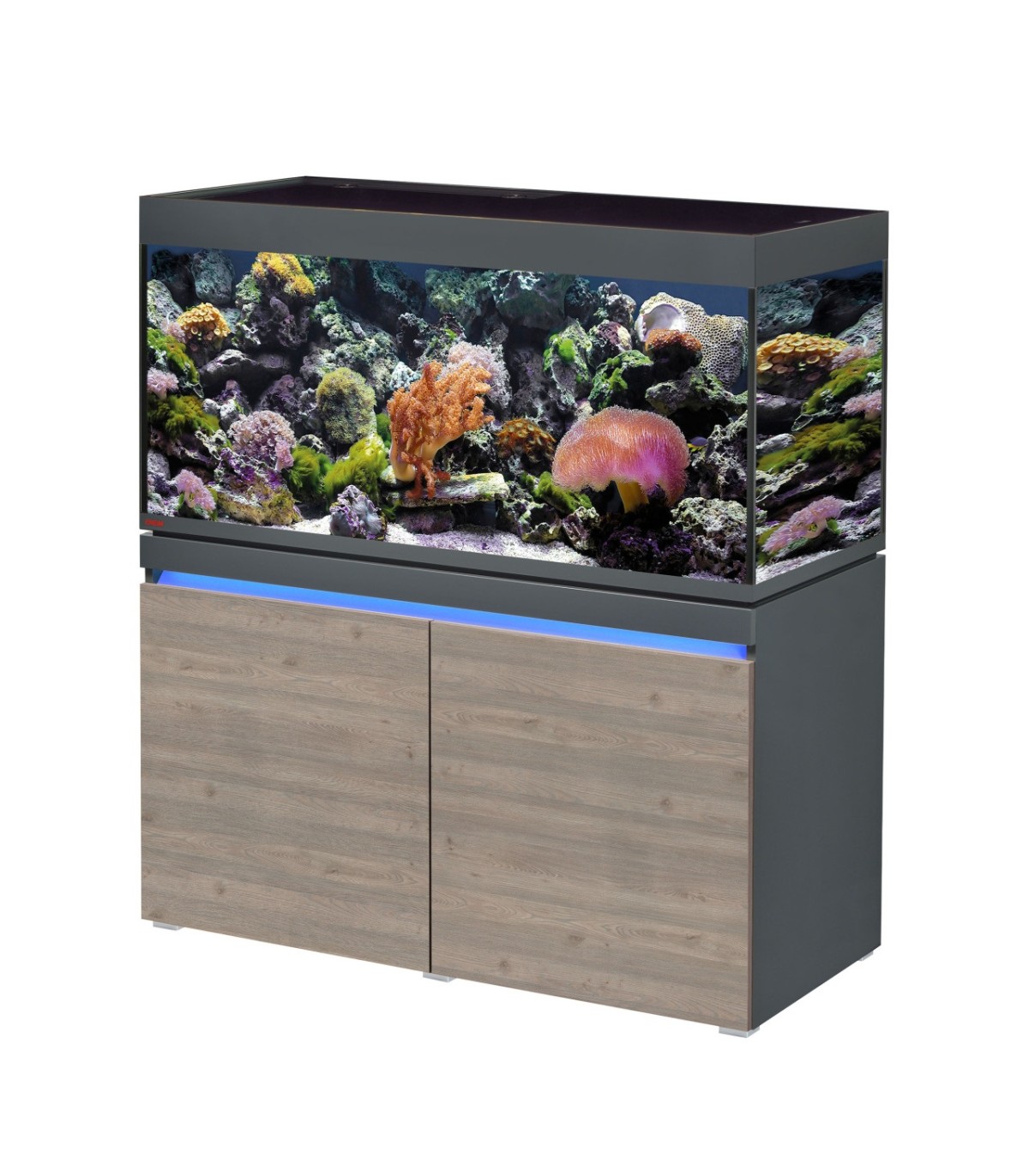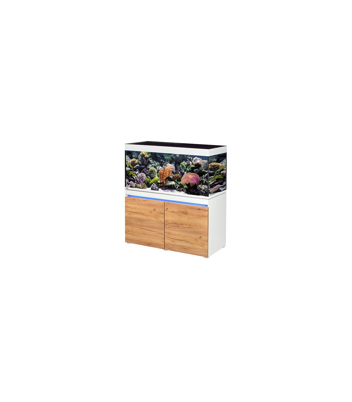 Iluminación LED atmosférica en la parte superior del mueble con control digital por WiFi - gracias al EHEIM RGBcontrol+e incluido tiene millones de colores a elegir