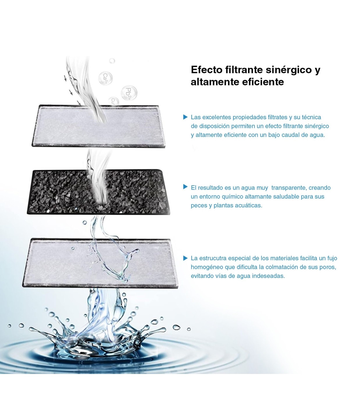 Contienen una fibra sintética de alta superficie formada por poros abiertos ayuda a eliminar la toxicidad del amonio, el amoniaco y el nitrito, a través de una colonia bacteriana que se establecerá fácilmente en su compartimento especializado.