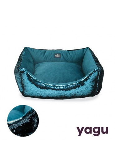 La cuna Yagu Glitter de color turquesa esta fabricado con materiales de máxima calidad, con acabados que aseguran su resistencia y duración. Por fuera tiene lentejuelas muy brillantes con unos reflejos espectaculares y por dentro tiene una felpa super suave lleno de confort para nuestro amigo. Sus medidas son 50 cm (ancho), 38 cm (profundidad), y 20 cm (altura). Cuenta con un relleno de alta recuperación donde le proporciona a nuestra mascota todo el calor, ya que al tener bordes elevados les protege mejor de las corrientes de aire. Además, ofrece un cojín acolchonado extraíble para que se pueda lavar de una manera mas fácil cuantas veces se quiera. Es ideal para las mascotas que les encante dormir acurrucados, esta diseñado especialmente para la comodidad de nuestros amigos. Esta cuna es perfecta para el descanso diario de nuestras mascota.