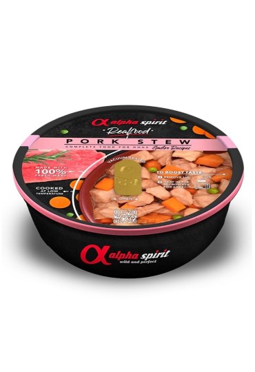 97% cerdo fresco en su salsa, guisantes, zanahoria, boniato, especias.