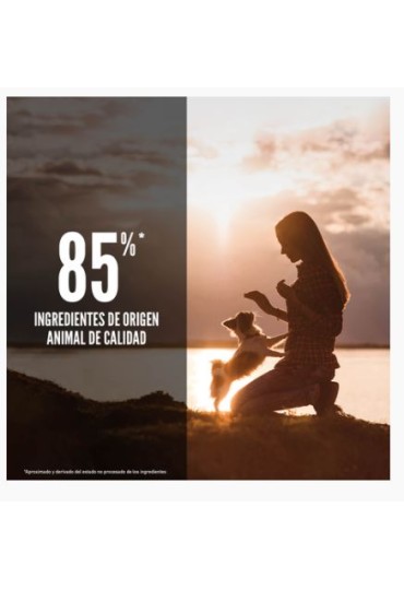 Los 5 primeros ingredientes son ingredientes de aves y pescado frescos o crudos2. 85%3 de ingredientes de aves y pescado de calidad, que proporcionan una rica fuente de proteínas, vitaminas y minerales esenciales.