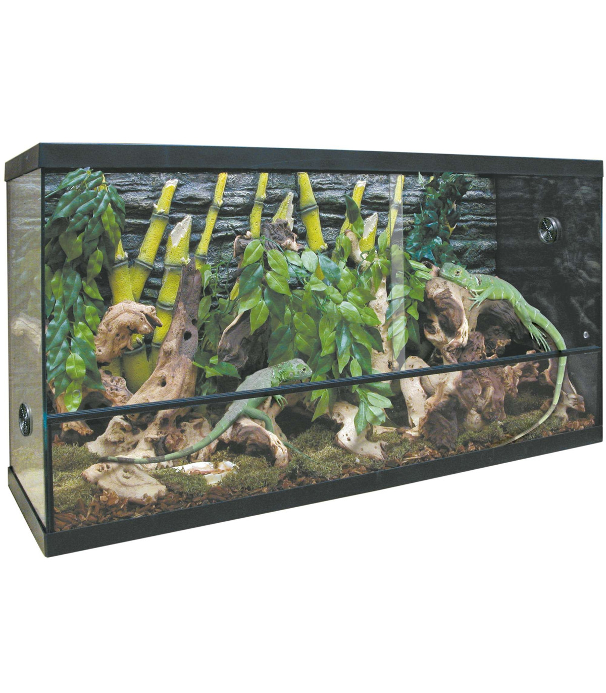 Este kit es ideal para reptiles, anfibios, arácnidos y pequeños animales. Puesto que está fabricado en cristal confiere una gran visibilidad desde cualquier ángulo y gracias a su tapa específicamente diseñada posee una gran ventilación. El kit incluye: Manta térmica REPTI-HEAT. Sustrato. Fluorescente. Centralita eléctrica. Termómetro. Cerradura de seguridad.